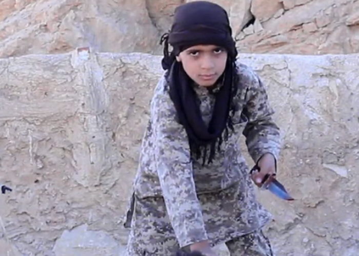 The child is among several hundred so-called "Cubs of the Caliphate". They are children, ranging in age from pre-teens to mid-teens, given military training and hardline indoctrination after being recruited near schools, mosques and in public areas where Islamic State is operating.