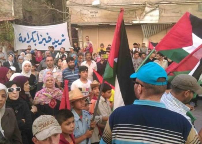 Wide protests started on Saturday in Yarmouk Camp for Palestinian refugees in Southern Damascus, condemning the living condition and hunger they suffer from, especially after the cease of aid from the international relief organization especially United nations Relief and Works Agency (UNRWA). The protests came after calls from many community organization asking people to gather at the UNRWA’s Center to support Youth in Yarmouk Camp.