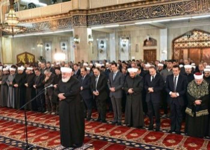 Assad was shown next to Religious Affairs Minister Mohammed Abdel Sattar Sayyed and the mufti of Syria, Ahmad Badredin Hassoun.
