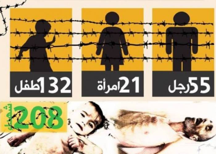 Syria's Revolutionaries Rally said 132 children, 55 men, and 21 women have lost their lives due to the suffocating siege on rebel-held areas in Syria.