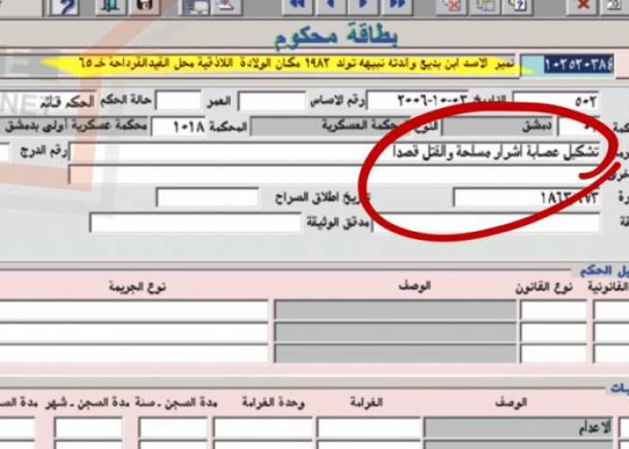 Numair is a life-time sentenced by the field court due to his commitments of several crimes and pillaging. The most famous of these took place in “al-Haram” currency change company’s office, known by most Syrians. He was captured by the office security cameras and the footage was published on “YouTube” and other social media outlets. He spent 15 years in the prison.