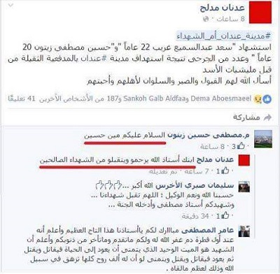 (Zaman Al Wasl)- A Syrian father was shocked to see news of his son’s death posted on Facebook on Wednesday and when the father asked to verify the identity of the martyr, the news came: “It’s your son! May he rest in peace.”