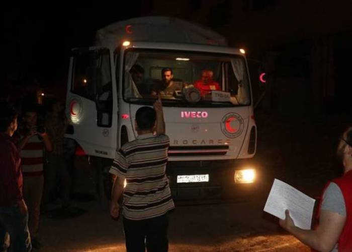 “Nine lorries are currently being unloaded in Daraya. They are carrying food aid, including dry goods and flour, non-food aid as well as medical aid,” said Tamam Mehrez, operations director of the Syrian Red Crescent.