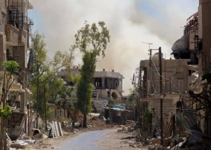 (Zaman Al Wasl)- Syrian regime helicopters on Sunday have dropped 12 barrel bombs on the besieged town of  Daraya west, rebel council said.