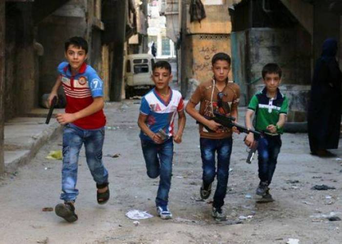 According to the report, it became familiar the children are divided into groups; the regime group, ISIS group, FSA group, al-Nusra Front group as a game.