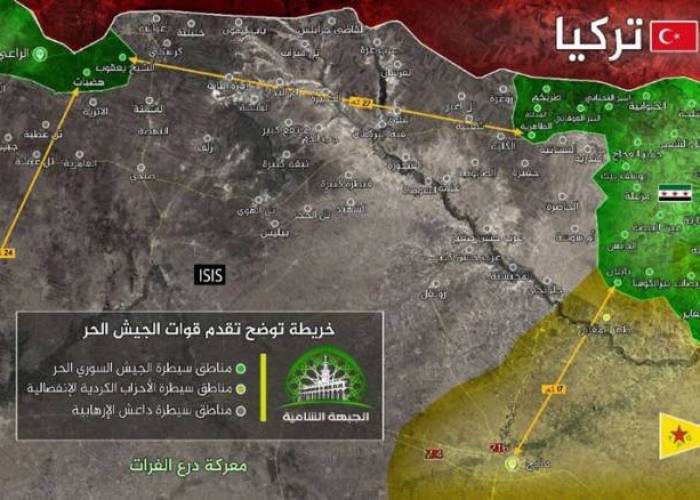 (Zaman  Al Wasl)- Free Syrian Army have taken control of 8 villages from Kurdish militias near the border town of Jarabulus in northern Syria, Anadolu news agency reported.