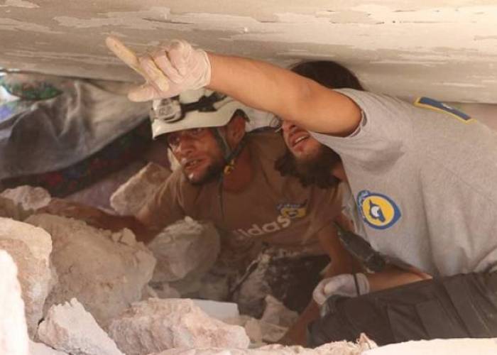 The aerial bombing on rebel-held Idlib has targeted Marret al-Numan, Saraqeb, Maershurin, Khazano and Skaik towns. One person was killed, according to activists.