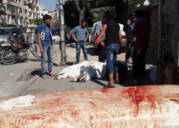 On Tuesday, Syrian regime aircraft reportedly struck al-Sokkary district with chlorine gas bombs.