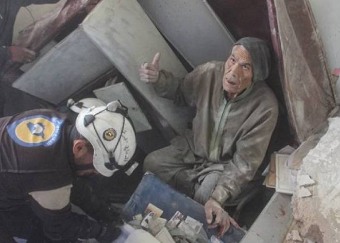 The 4 strikes hit a crowded area next to an elementary school, the rescuing group said.