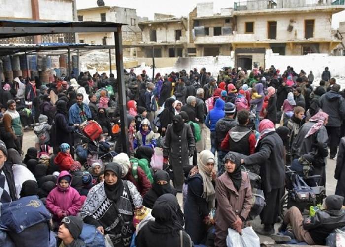 The figure includes those who sought refuge in the government-held west of the city and the Kurdish-controlled enclave in between, but not those who fled south to remaining rebel-held territory, the Syrian Observatory for Human Rights said.