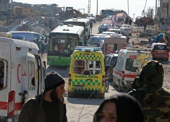 A statement from the pro-Damascus military alliance that includes Hezbollah said more than 8,000 had left in 10 convoys.