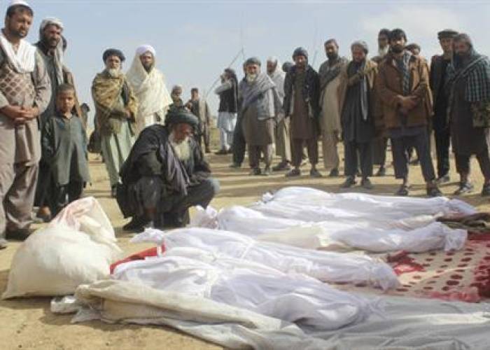 Residents later carried over a dozen corpses of the dead, including children and family members of the Taliban fighters, toward a local governor's office in a show of rage.