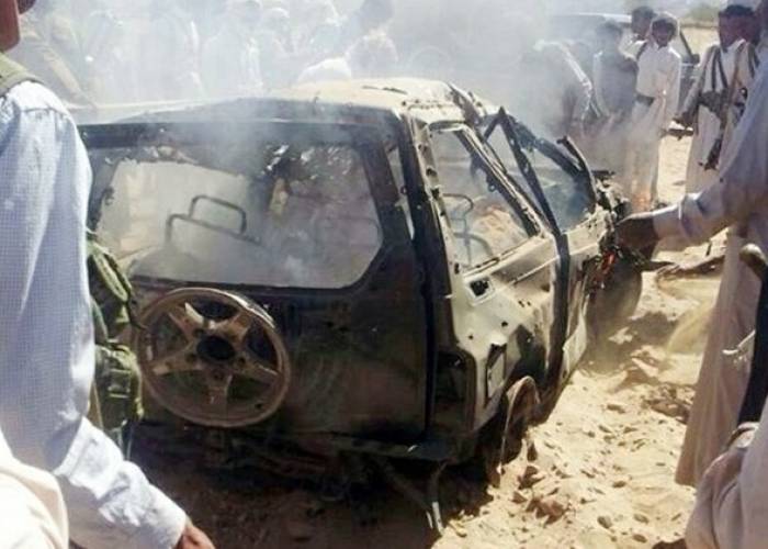 The officials said the pilotless plane targeted a vehicle travelling in Baihan in the province of Shabwa, in which two suspected al-Qaeda members were travelling. Both men were killed, it said.