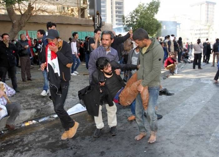 The clashes broke out as the protesters attempted to cross the bridge that links Tahrir Square where they had gathered and the heavily fortified Green Zone, which houses government buildings, embassies and international organizations.