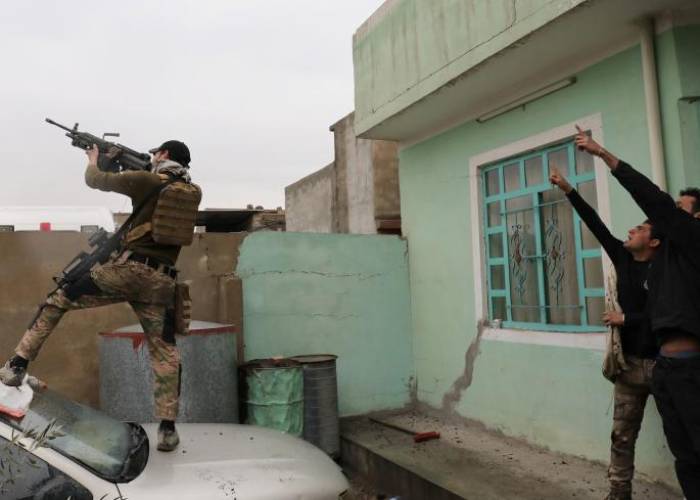The Iraqi forces took the eastern half of the city in January, after 100 days of fighting.