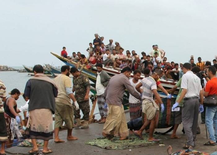 The refugees had departed from the western port city of Hodeidah en route to Sudan when the gunship opened fire on Friday, the United Nations refugee agency said.