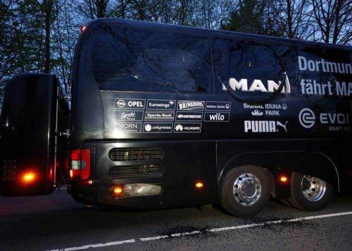 Three explosions went off as the Borussia Dortmund bus traveled to the club's stadium for their Champions League match against AS Monaco on Tuesday, injuring Spanish defender Marc Bartra and delaying the fixture by a day.