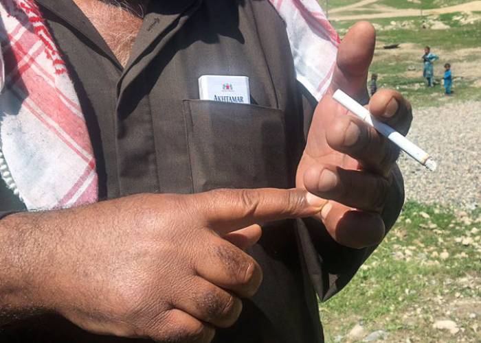 Akhtamar Classic, he said, was the only brand smuggled into territory controlled by ISIS. A pack used to cost 750 dinars, or 63 cents. Under the militants, it spiked to 20,000 dinars, or $17. He said he couldn’t afford $17. So he and four trusted friends pooled money to buy one pack of 20 cigarettes. He showed me how he would break each slim cigarette into three pieces to make them last longer.