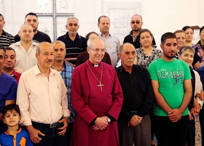 The head of the Anglican Church met with Iraqi Christian refugees during a visit to Jordan in which he called on the region's embattled Christians to remain in the Middle East, the cradle of their faith.