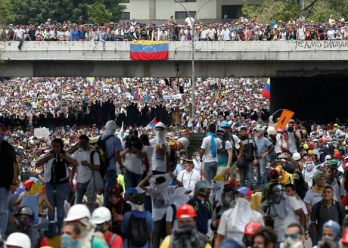 Government forces used tear gas and water cannon against demonstrators marching along a highway in east Caracas, the prosecutor's office said. Protesters fought back with rocks and Molotov cocktails.