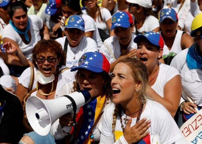 Led by opposition leaders, lawmakers and Lilian Tintori -- the wife of jailed opposition leader Leopoldo Lopez -- the crowd carried flowers and placards denouncing "repression."