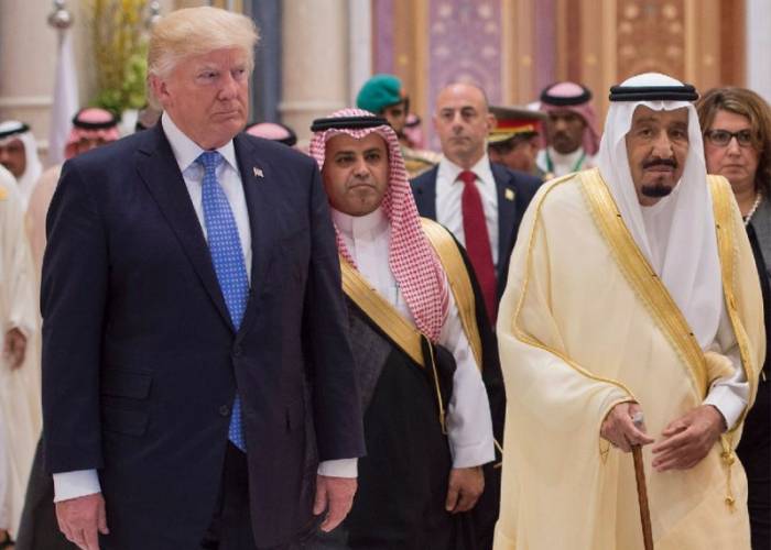 The Saudi leader's speech came minutes before a highly anticipated address by Trump, who arrived in the Sunni kingdom on Saturday on his first foreign tour since taking office.