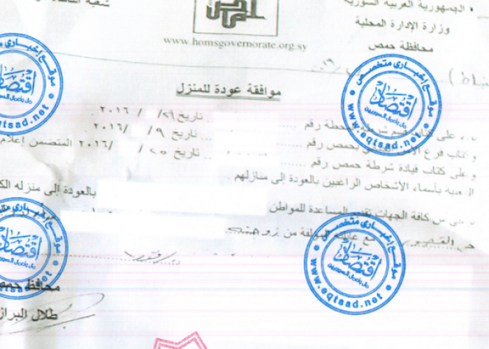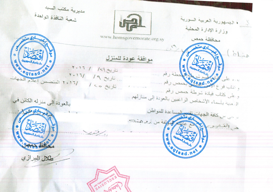 (Zaman Al Wasl)- Syrian displaced should get three security approvals to get back to their home in regime-held areas of Homs amid fear of arrest as a leaked document showed.