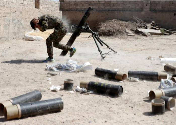 “Daesh are just beyond that point,” he said, walking past a rocket Islamic State fired two days ago.