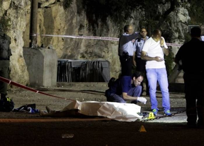 At one scene, two Palestinians were shot dead after opening fire at and trying to stab a group of Israeli police officers, police said. At the other, a Palestinian fatally stabbed a border policewoman before being shot dead by police.
