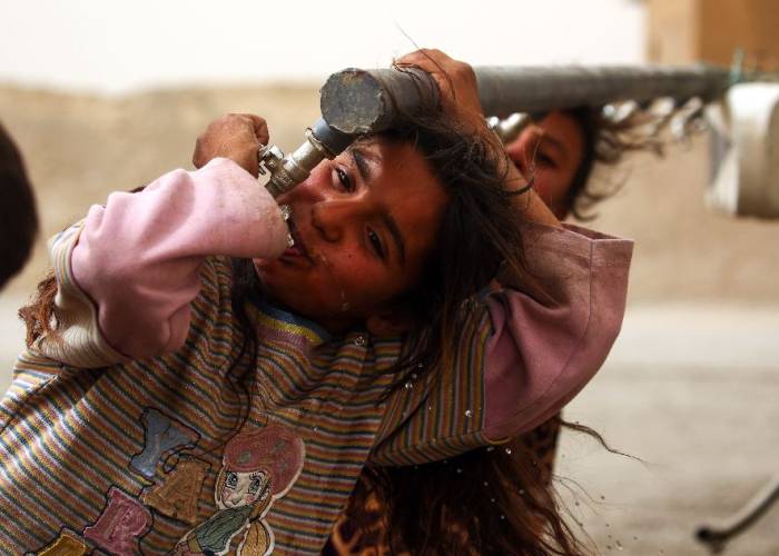 The northern city has been without steady running water for several weeks after damage to pipelines by heavy bombardment, including suspected strikes by the US-led coalition.