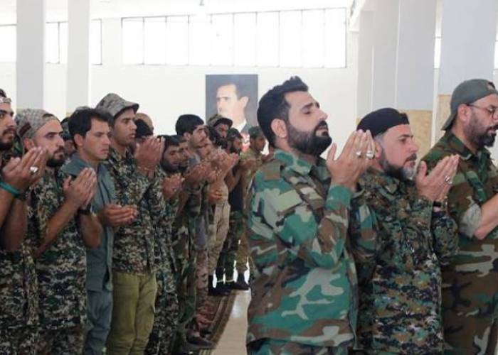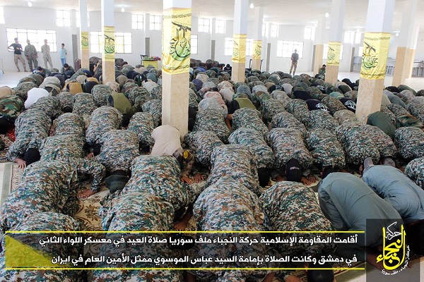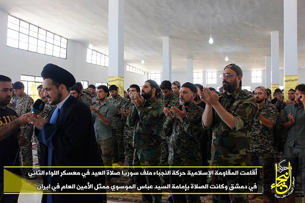 (Zaman Al Wasl) Al-Nujba'a militia, which is fighting alongside Bashar al-Assad, said it held Eid prayers at its headquarters, the Second Brigade Camp in Damascus.