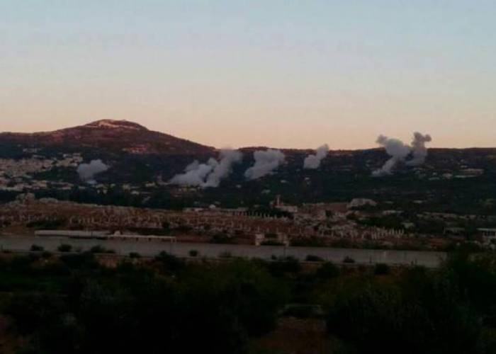 The Grad-rocket attack was in retaliation to a heavy aerial bombing on Jisr al-Shugour town at the enclaves of coastal Latakia region that left two civilians dead, rebel accounts said.