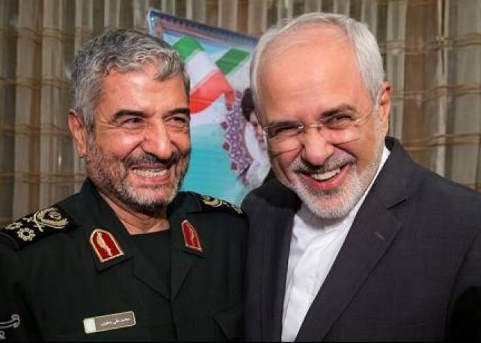 Several Iranian newspapers ran the same photo on the front page on Tuesday: the urbane, U.S.-educated Foreign Minister Mohammad Javad Zarif laughing and hugging the commander of the IRGC, Major-General Mohammad Ali Jafari, in a striking display of unity between the two main factions of Iran’s leadership.