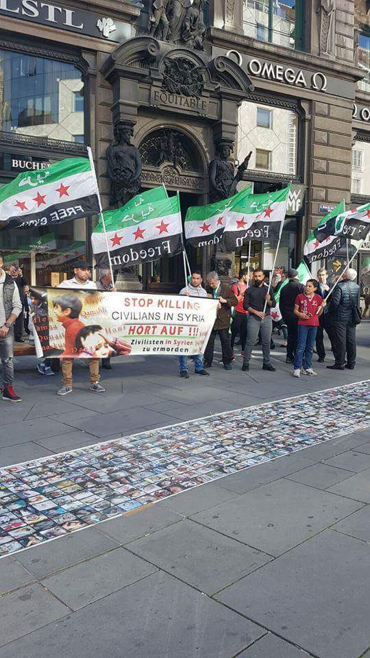 The demonstrators raised slogans and placards condemning the brutal killing of the Syrian regime that claimed lives of almost half million people.