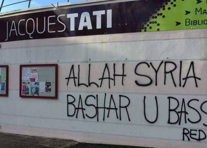 (Zaman Al Wasl)- "God, Syria and Bashar, only." This is how the arm of extremism extended to embrace thug culture and unite with it. The phrase was written on the walls of a hall dedicated to collecting donations for war torn people in Syria in western France.