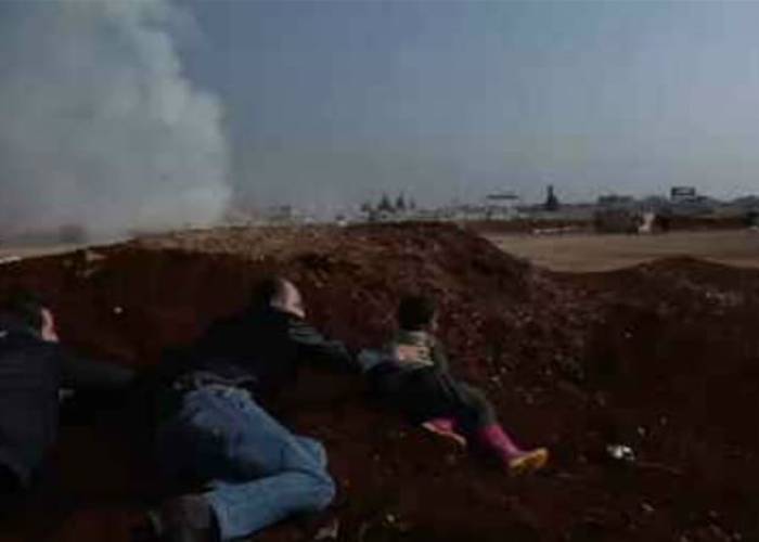 Dramatic footage captured in the countryside area by Al Jazeera showed men, women and children desperately trying to find the nearest cover after the attack - which was also filmed.