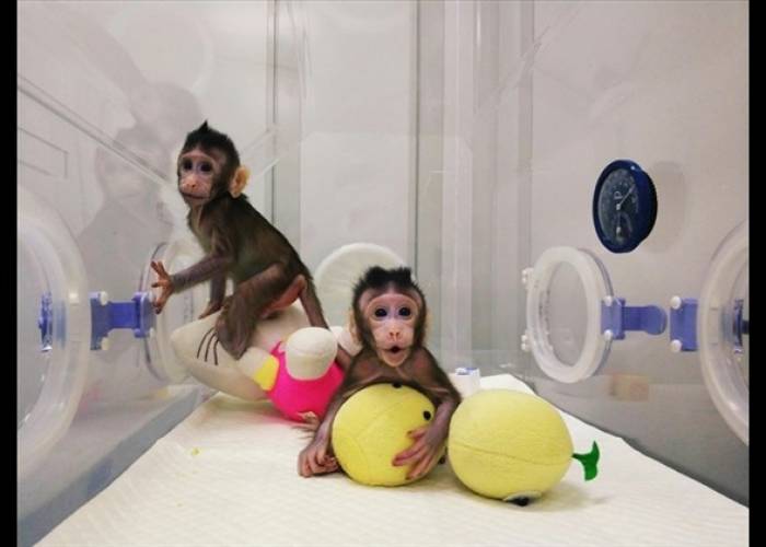 The two long-tailed macaques (Macaca fascicularis) named Hua Hua and Zhong Zhong were born at the Chinese Academy of Sciences Institute of Neuroscience in Shanghai, and are the fruits of years of research into a cloning technique called somatic cell nuclear transfer.