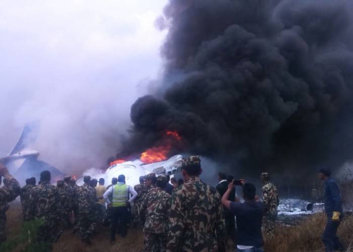 KATHMANDU (AFP)- A Bangladeshi plane with 67 passengers on board crashed near Kathmandu airport Monday as it was coming in to land, officials said, as firefighters battled to extinguish the burning wreckage and rescue passengers.