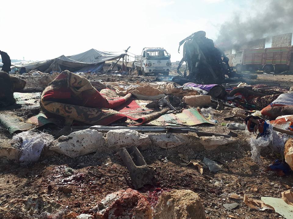 The Russian used high-explosive missiles in the deadly strike on the camp in Hass village in the southern countryside of Idlib. 15 more people were also wounded, according to rescuing group.
