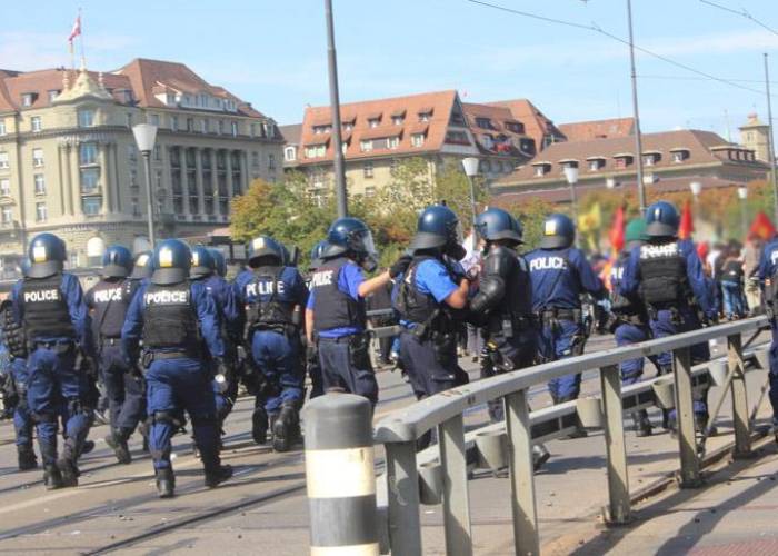 The police had to intervene after the demonstrators indulged in acts of vandalism, Swissinfo news agency said.