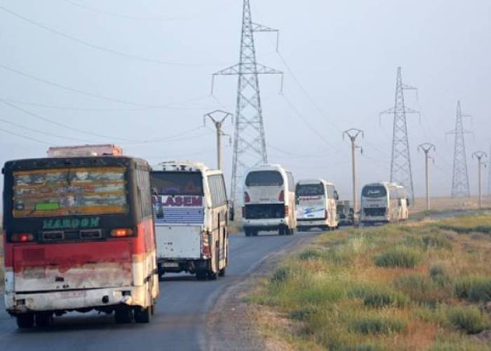 Hundreds of people have left since last week. Under the deal, the buses take fighters and civilians who refuse the return of state rule to insurgent territory in the north near the Turkish border.