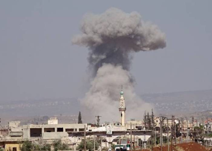 The Britain-based monitoring group and two rebel sources said aircraft had bombed Busra al-Sham, Nawa, Rakham and other towns in the province.