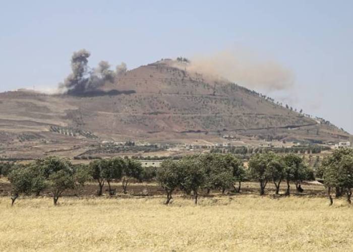 The strikes targeted a school in the town of Ayn al-Tineh that hosts tens of displaced families who fled bombing to Golan Heights villages in Quneitra province.