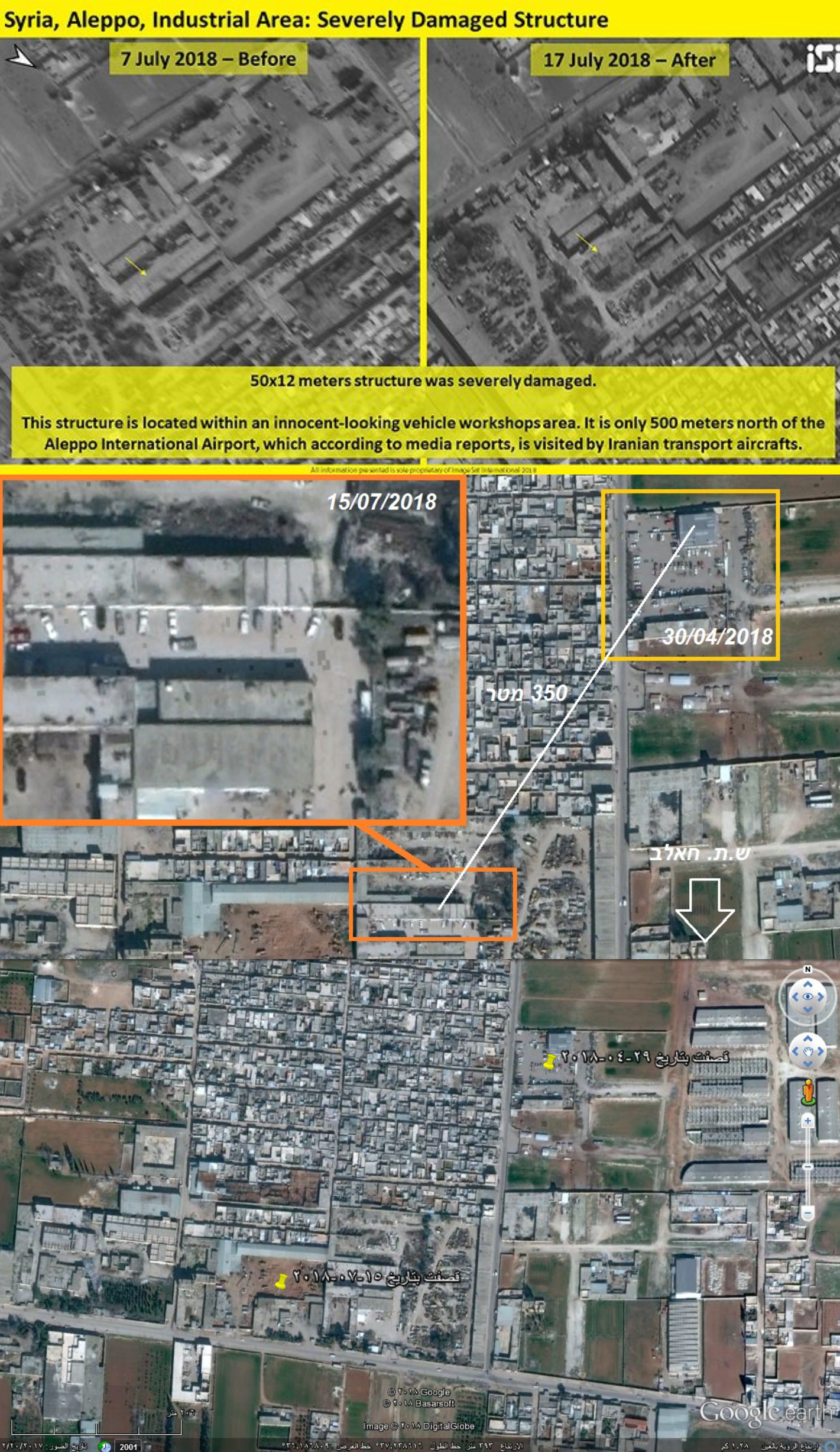 (Zaman Al Wasl)- An Iranian facility hit by Israel in northern Aleppo province on Sunday was severely damaged, according to fresh satellite images posted on Tuesday by the Israeli media.