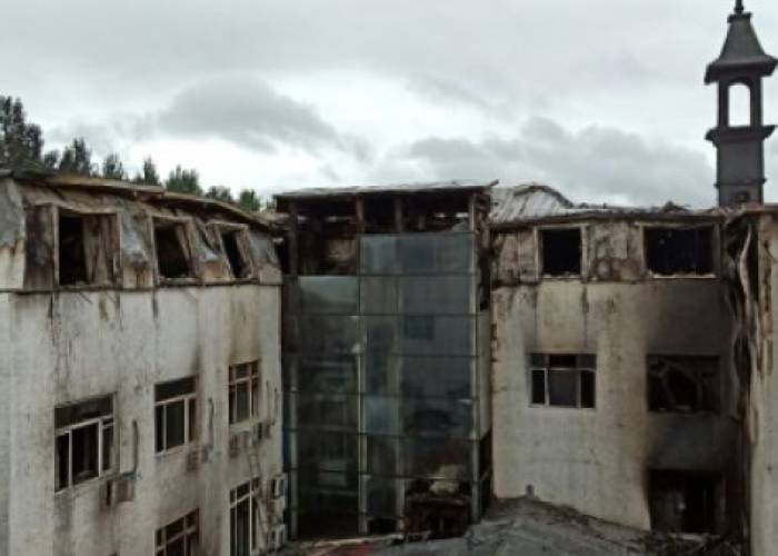 Blackened walls inside the hotel, which is part of a hot springs complex, could be seen in footage released by state broadcaster CCTV.