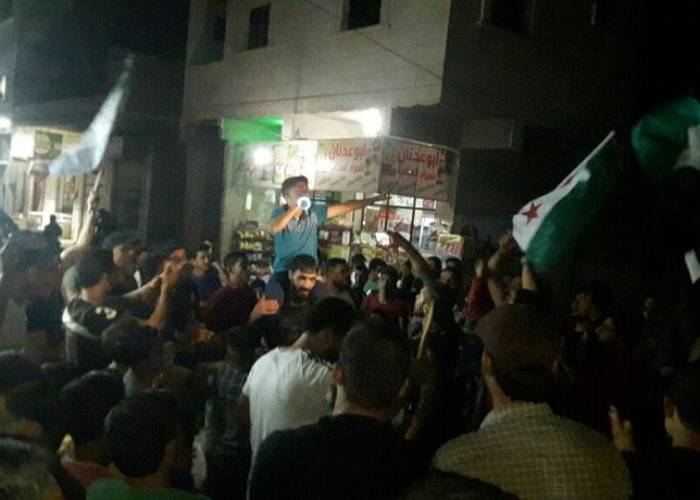 Ahmad al-Youssef, who also participated in the demonstration in Maara al-Nouman, said the protesters shouted chants in support of the Free Syrian Army (FSA), a group of opposition factions founded by officers who deserted the Syrian forces after the begining of the war in 2011.