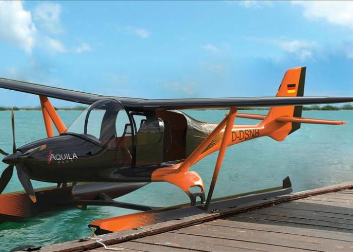 The aircraft is designed to fit four people and can land on sea as it has floats under its half-wings.