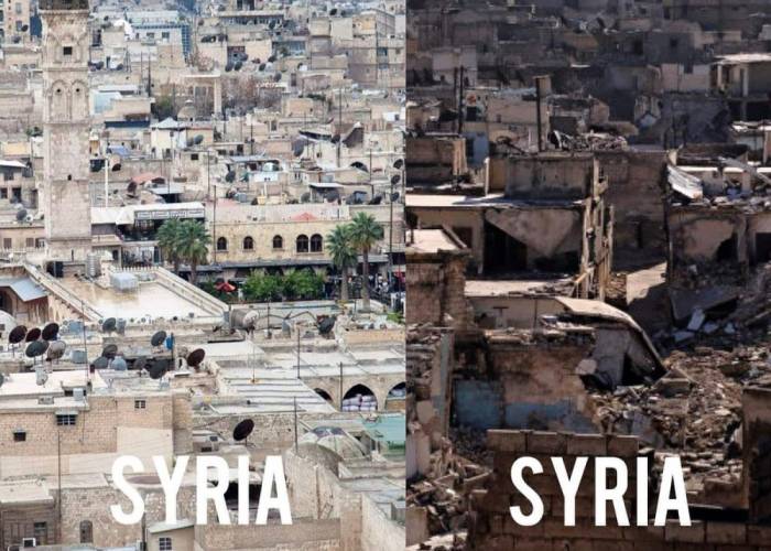 Thousands of images have been shared highlighting the devastation caused by the wars, with several users showing the destruction in Syria since an offensive was launched against the Islamic State of Iraq and the Levant (ISIL, also known as ISIS) group.