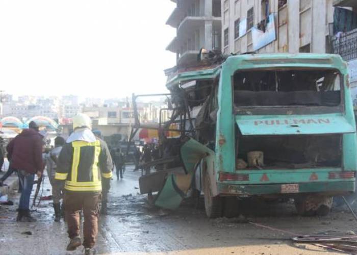 Turkey's state-owned Anadolu Agency said two bombs hit Afrin's city centre, one exploding on a bus and the second in a garbage container.