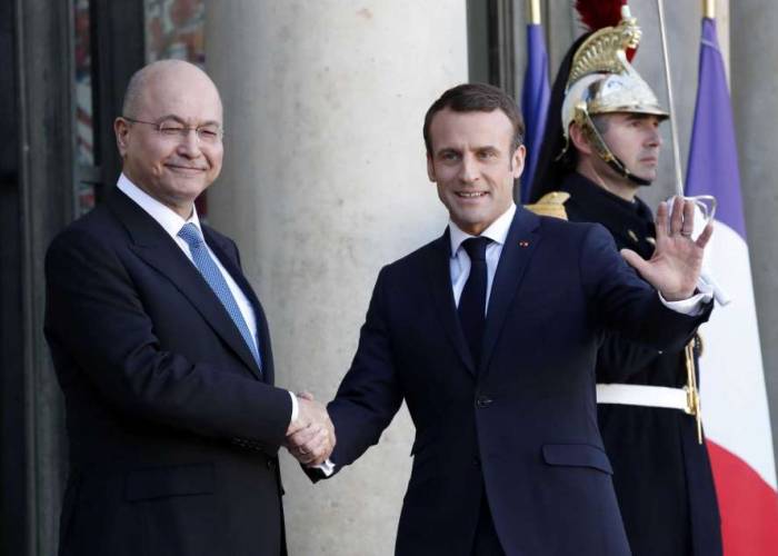 Saleh lauded France and the EU for its "model relationship" in assisting Iraq, telling Macron: "We hope to welcome you in Baghdad soon."